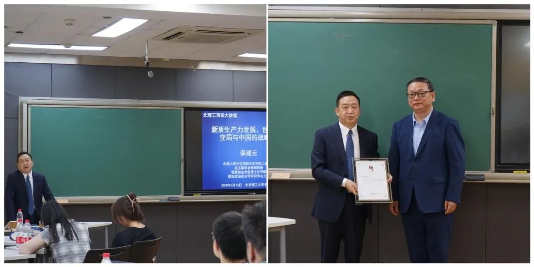 5月13日下午,bv伟德国际1946官网第11期“同心讲堂”暨“百家大讲堂”顺利举办,活动由研究生院、党委统战部承办,致公党北理工支部协办,邀请了中国人民大学保建云教授作题为《新质生产力发展、世界经济变局与中国的战略选择》报告。研究生院常务副院长邓方、党委统战部常务副部长吴文君,民主党派、统战团体成员代表及研究生代表等40余人参加了报告会。报告会由党委统战部副部长和霄雯主持。