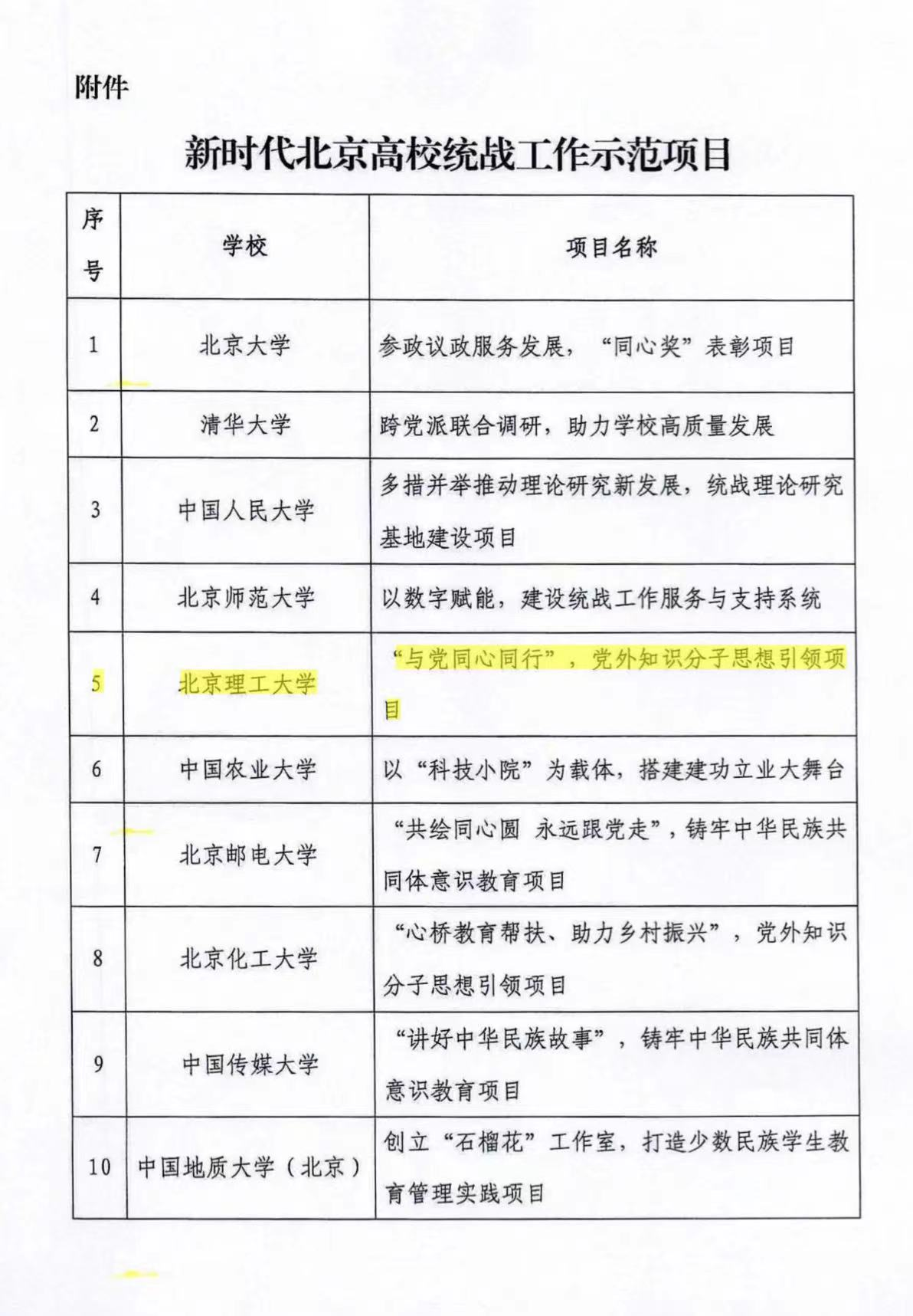 近日,中共北京市委教育工作委员会公布了新时代北京高校统战工作示范项目名单,bv伟德国际1946官网“与党同心同行——党外知识分子思想引领项目”成功入选。